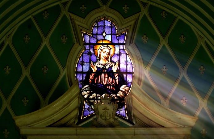 Our Parish is dedicated to the Immaculate Conception of the Blessed Virgin Mary. This feast is commemorated on 8 December each year. The celebration of Mary’s conception has a long and interesting history in the Church. While Mary’s Immaculate Conception was already popular tradition and belief among Catholic scholars and clergy, it wasn’t until 1854, when Pope Pius IX published Ineffabilis Deus, that the doctrine of Mary’s Immaculate Conception became official Church dogma. Pope Pius IX also fully defined the dogma which, prior to Ineffabilis Deus, existed in many different forms throughout the universal church. The Immaculate Conception is not the celebration of Jesus’ conception by the Holy Spirit, nor is it the miracle of the virgin birth. The Immaculate Conception refers wholly to Mary’s conception without the stain of original sin. In Pope Pius IX th words, the Blessed Virgin Mary “in the first instance of her conception, by a singular privilege and grace granted by God, in view of the merits of Jesus Christ, the Saviour of the human race, was preserved exempt from all stain of original sin.” Through Baptism, we remove the stain of original sin , but this stain was never on Mary’s soul. It was excluded entirely. She was created as Adam and Eve were, without original sin. In fact Mary is known as the new or second Eve, who became mother to the new Adam, the Saviour of all humankind.